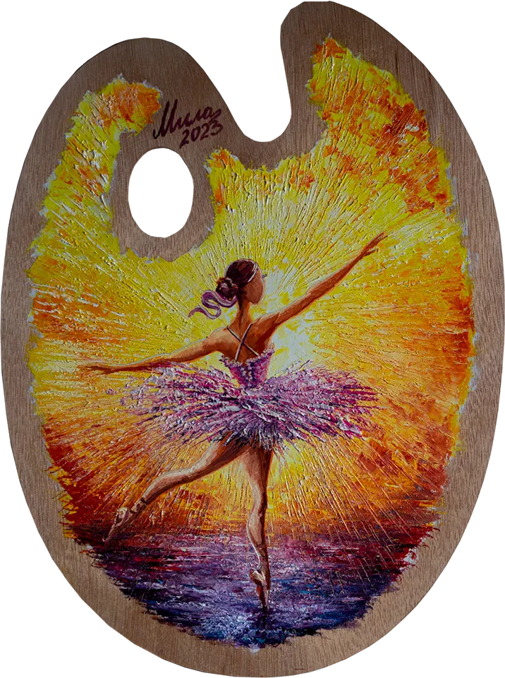 Palette — Ballerina - Firebird Painting by Mila Vasileva Oil on palette, 30x40 cm. In a private collection.Similar work can be created upon request ← Palette — A walk in the park Palette — Horse → Back to list