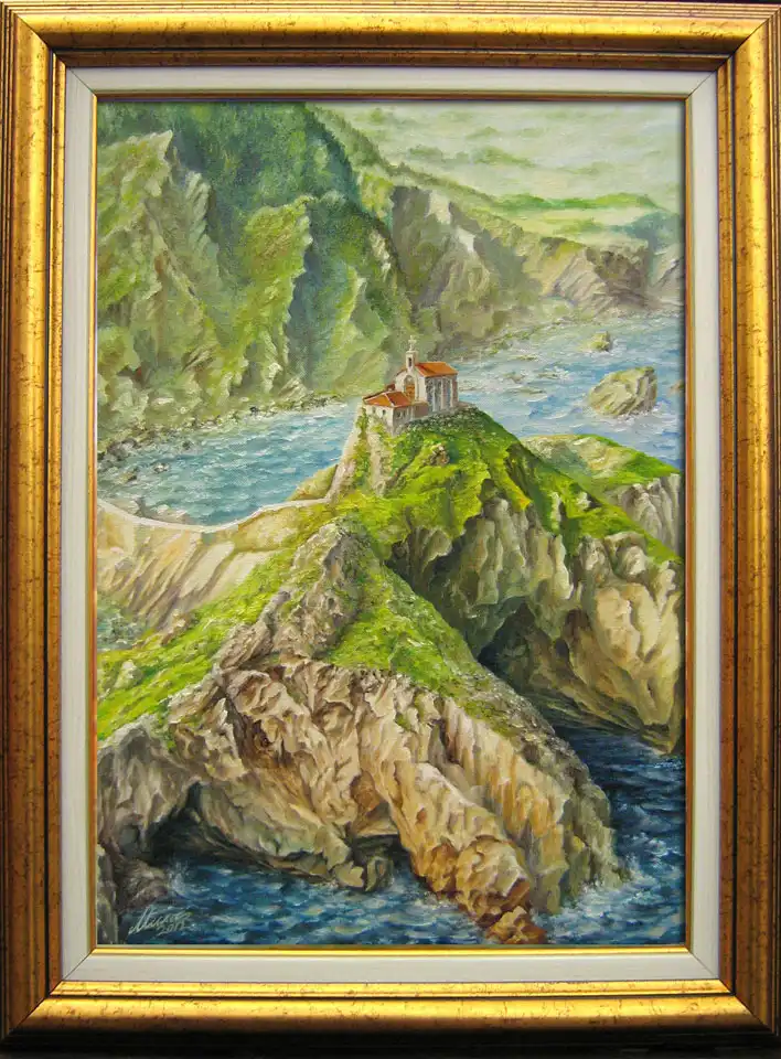 Gaztelugatxe Painting by Mila Vasileva Oil on canvas, 30x40 cm. In a private collection.Similar work can be created upon request ← Puente de Vizcaya Guggenheim Museum Bilbao → Back to list