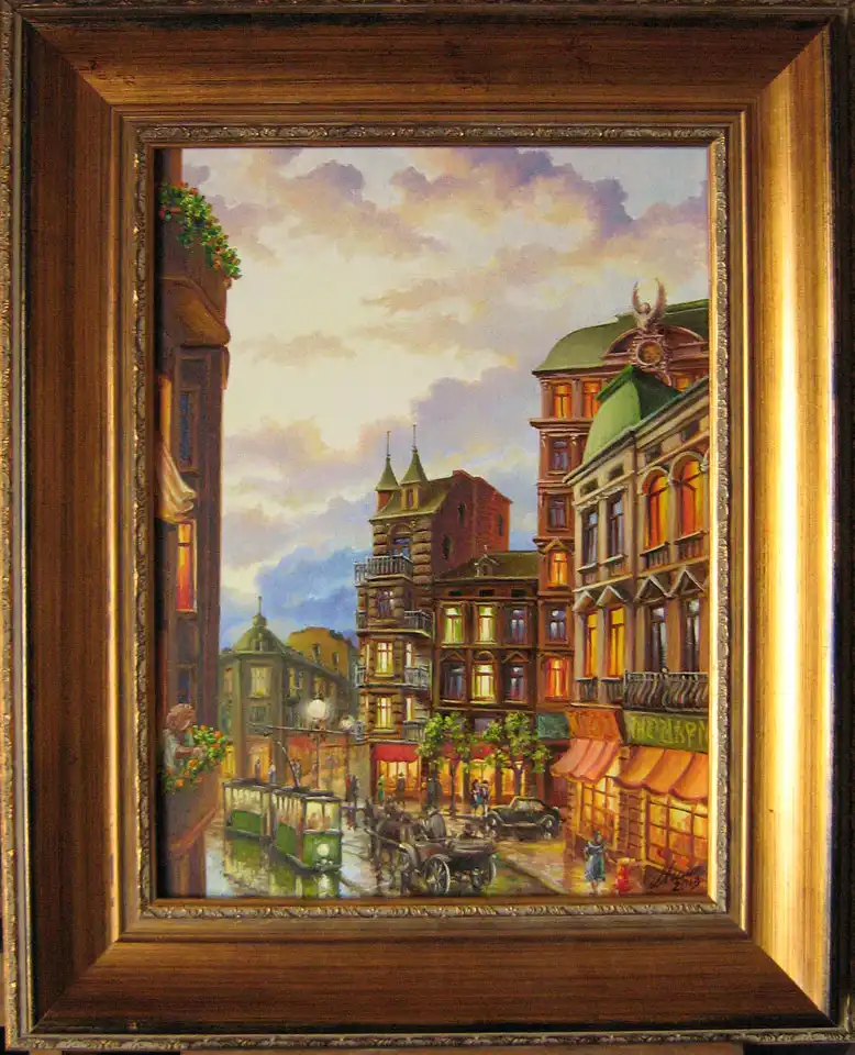 Old Sofia — Main Street at evening Painting by Mila Vasileva Oil on canvas, 30x40 cm. In a private collection.Similar work can be created upon request ← Old Sofia — Boulevard King Liberator Old Sofia — National Bank → Back to list
