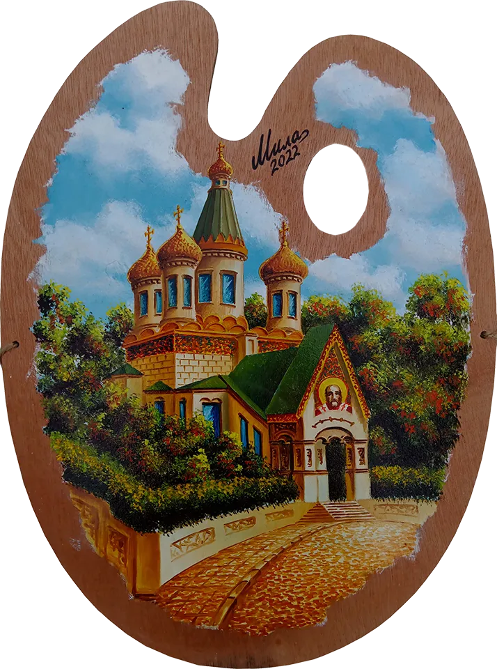 Palette — The Russian Church Painting by Mila Vasileva Oil on palette, 30x40 cm. Available. ← Palette — The Eagle Bridge Palette — A walk in the rain → Back to list
