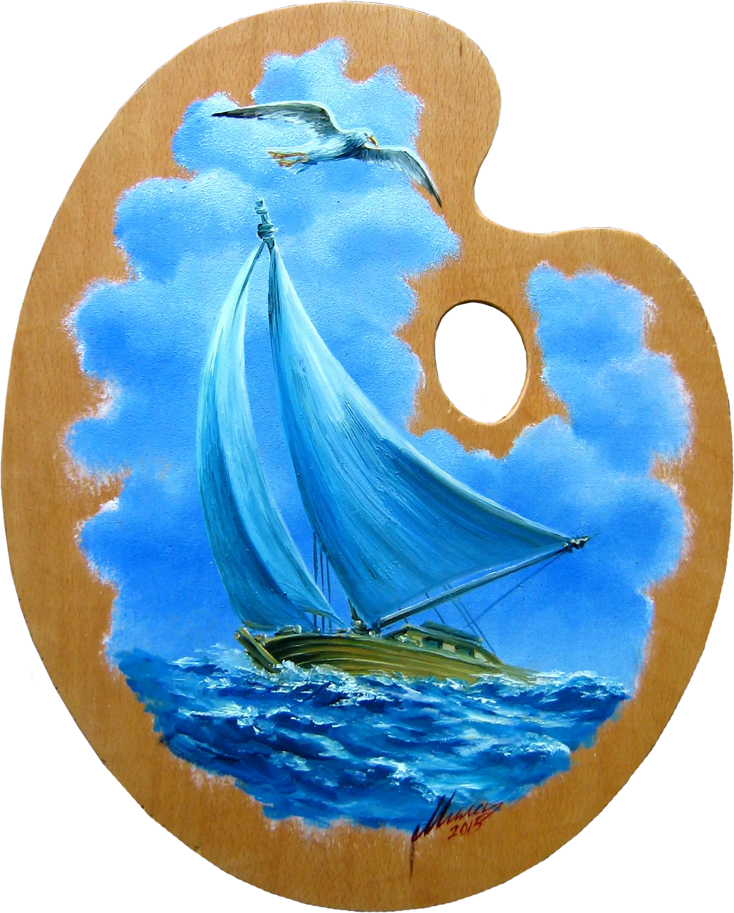Palette — Sailing Painting by Mila Vasileva Oil on palette, 30x40 cm. In a private collection.Similar work can be created upon request ← Palette — Sparrows in the winter Palette — Boat on the shore → Back to list